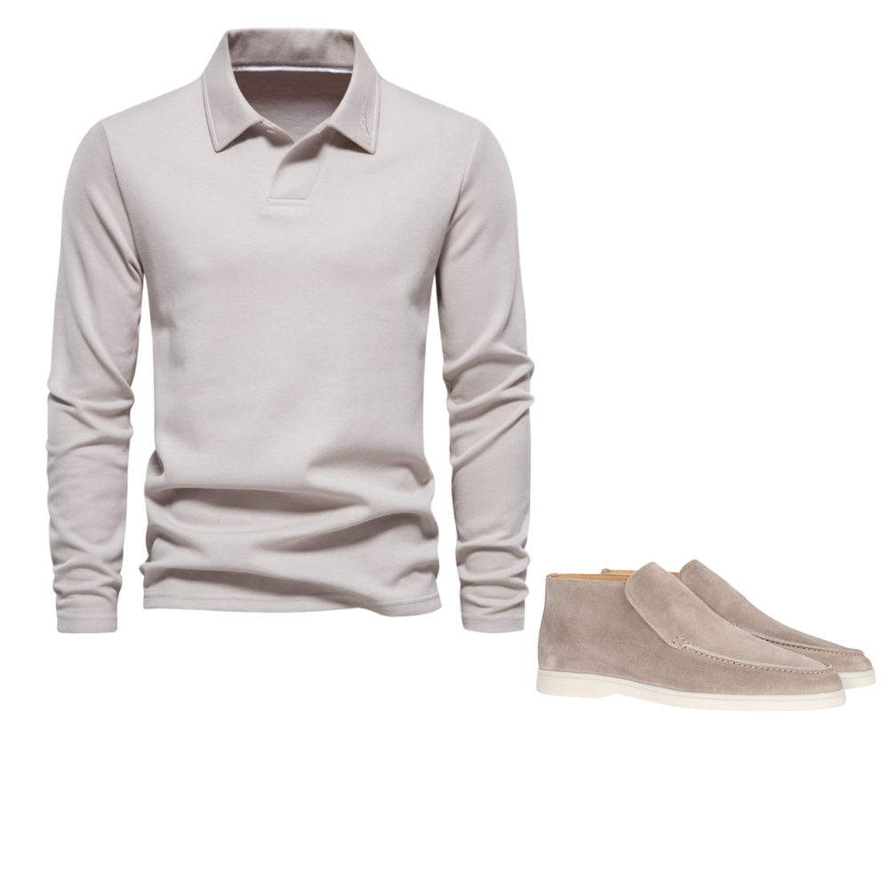 Refine your wardrobe with the Moderno™ Set, featuring a premium V-neck sweater, tailored trousers, and high suede loafers for a polished look. This curated ensemble blends sophistication with comfort, perfect for formal occasions or elevated casual outings.